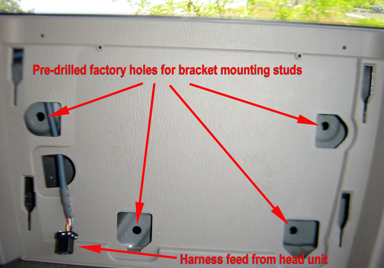 Location of factory holes for the bracket studs