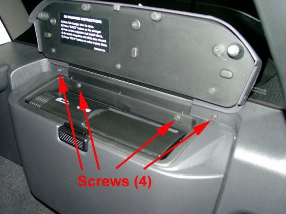 Screw and bolt locations for the factory 10-disc CD changer