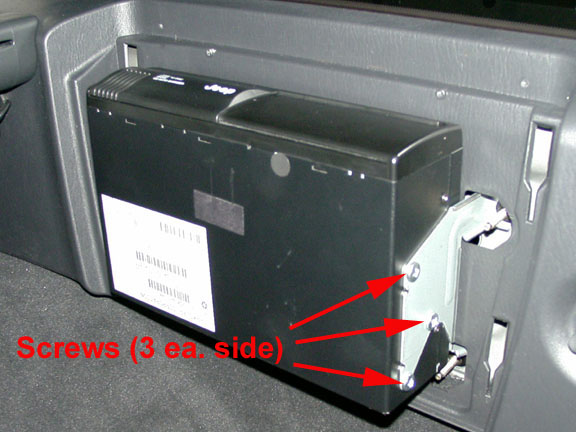 - Remove 6 phillips screws that attach changer to bracket, 3 on each side. A very short or angled screwdriver is needed for one screw on each side. Unhook wire connector on left side. The unit can now be slid out away from the bracket.