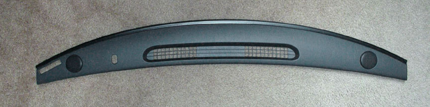 - With a wide flat tool (3" plastic putty knife or similar, as shown in upper left photo), gently pry the dash trim panel upwards starting at either end. You can then get your fingers under the lip and lift it up, working your way to the opposite end. The trim is held in place by four spring clips. There are no parts or wires attached to the trim cover.
