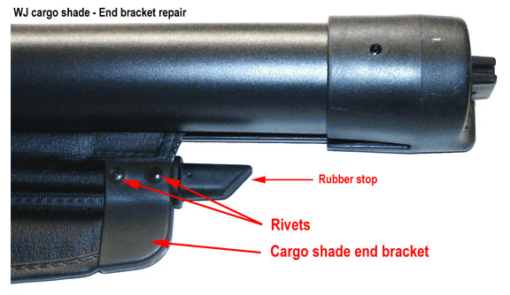 In 2000 Jeep issued a special repair kit for the cargo shade end brackets. Prior to the availability of the kit the entire cargo shade unit had to be replaced. The kits are available from any Mopar dealer and come in three different colors to match the original shade. I am not sure if Jeep offers the kits in the two colors not listed, Dark Slate and Sandstone, they may or may not have been added.