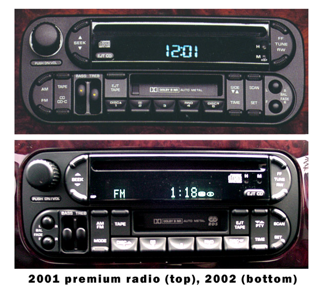 | Radio, premium (new button layout and improved LED display. Black coating on antenna removed on 2002 models.) |