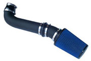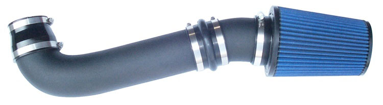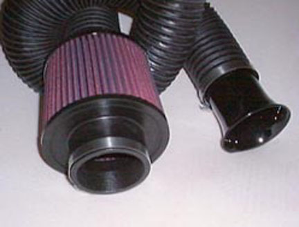 The Quick Cold unit from Intense Performance can fitted to existing intake systems, or, it can be used to totally replace it. Attached to the deep inner cone front of the filter is a flexible 3-1/8" inside diameter hose that can be routed to the front of the car, in the grille, air dam, bumper, or wherever maximum cold air can be accessed. The cold air blows directly into the deep inner cone filter, to maximize the air density. The sides of the QCU are open, to allow additional flow when it is needed. By attaching the air filter as close as possible to the throttle body, the QCU allows you to have the best of both worlds. Cold air at higher pressure is routed directly to the filter, but when extreme flow rates are needed, if the air capacity of the tube is exceeded, additional air is freely mixed in with all the cold air that the duct can handle. According to the manufacturer, this simple yet ingenious design makes a remarkable performance improvement.