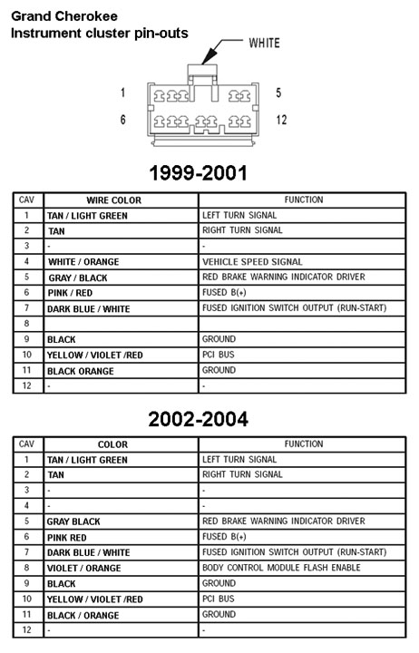 1999-2004 Grand Cherokee cluster pin-outs.
