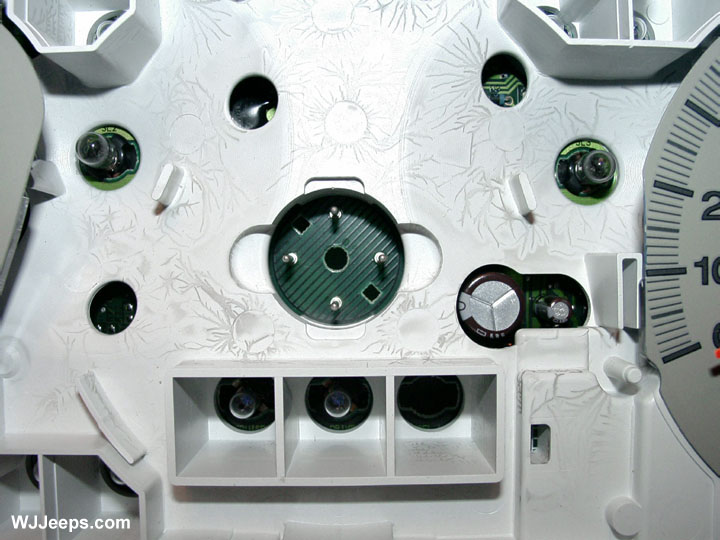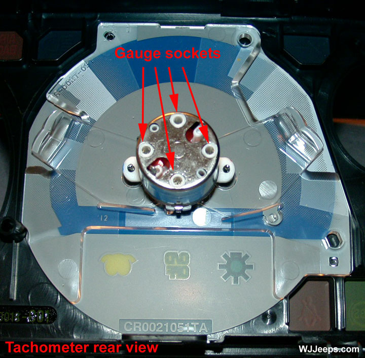 There are 5 clear bulbs in the cluster that provide backlighting for the WJ black-face gauges