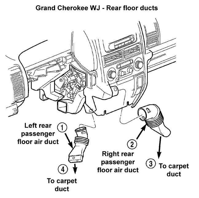 7. Remove the bolt from the HVAC housing mounting stud on the engine compartment side of the dash panel (Fig. 9). 8. Remove the rear floor heat ducts from the floor heat duct outlets (Fig. 10). 9. Remove the HVAC housing mounting nuts from the studs on the passenger compartment side of the dash panel (Fig. 11). 10. Remove the HVAC housing from the vehicle, ensuring that the interior is covered in case of loss of fluids.