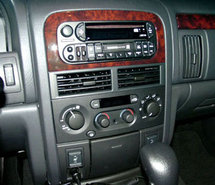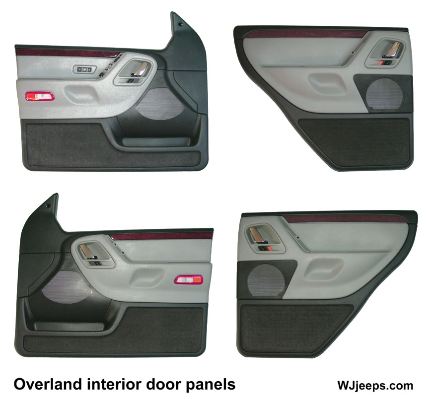 The Spartan Burl door trim molding strips are not available separately as replacement parts, the entire door panel must be purchased. The Redwood strips used on all Overland models, however, can be purchased individually and installed into other WJ door panels. Since the matching dash strips and the radio bezel for the Overland are also available, Limited owners can order all seven parts and have the real redwood interior. The woodgrain Overland steering wheel, although very expensive, is also available.