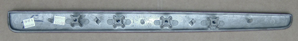 The long right strip above the glovebox is attached from the back of the instrument panel with four 10mm bolts and is much more difficult to remove. Due to safety considerations in the event of an accident, it is securely bolted on from the back. This trim piece is laminated to a piece of thick metal and weighs more than a half pound. To remove it requires the disassembly and removal of the entire instrument panel, including the cluster, radio, A/C unit, glovebox, ashtray and so on. Although not as difficult as it sounds, it could take 2-3 hours to disassemble the dash and put it all back together.