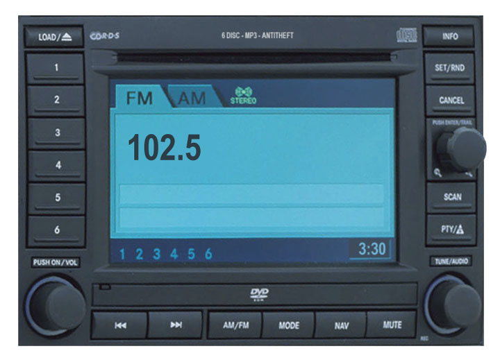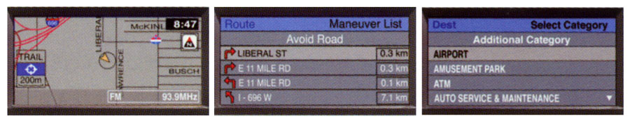 Radio features: The radio portion features 30 station presets, 10 each for AM, FM and the Sirius Satellite Radio system (requires Satellite Radio Service activation). The radio also features a CD changer control for the factory optional 10-disc changer. When not needing the use of the NAV unit, the DVD disc can be removed and an audio CD can be played in the same slot. Special Program Type (PTY) feature allows you to search for FM and Sirius Satellite Radio stations by type of music category, from those stations broadcasting a PTY compatible signal. The CD player is compatible with both CD-R and CD-RW discs. The radio or a CD from the changer can be listened to while in the NAV mode. Operation: First, the navigation system receives location signals from Global Positioning Satellites (GPS) orbiting the earth. At the same time within your vehicle, speed pulse, reverse signal sensors and a gyroscope constantly monitor distance traveled, direction and turn information. Compiling and comparing this data, the Navigation Radio matches your location with the data located on its geographic DVD-ROM, and places your vehicle's location on the map. After inputting the desired destination and routing preferences, the RB1 computes and provides visual routing directions along with voice commands that safely guide you through your trip.