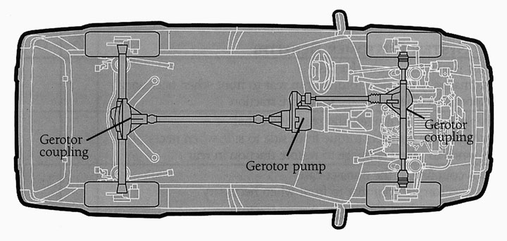 Center Differential: Gerotor pump-applied disc clutch with low-range lock